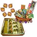 1 Kg. Gms. Assorted Sweets, Crackers and 6 Wax Diya