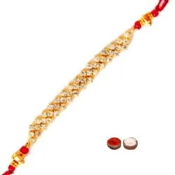Gift your brother a rakhi that blends elegance with tradition—a Long Bracelet Design Rakhi that adds charm and meaning to your Raksha Bandhan celebration. The rakhis bracelet-inspired design ensures it can be worn as a keepsake even after the festival, reminding your brother of your love every day. The set comes complete with Roli Tika and Chawal, essential elements to perform the ceremonial tilak and prayer, making your rakhi celebration heartfelt and memorable.