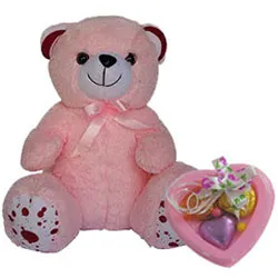 Treat your darling wife in a special way by ordering online this awesome 9 inch Teddy with 3 pc Heart Shaped Handmades Chocolate and show how much you miss her when you are away from her even for a short while.