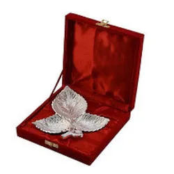This Elegance-to-Enthrall Silver Plated Designer Tray is a suiting pick for conveying your sincere sentiments to a family you owe much and thus occupying an inviting corner place in the souls of all the family members. This is a distinguished Saucer magnified with the Plating of Silver, flaunting a 3 Leaf Design Pattern and is displayed in a nifty Red Box.