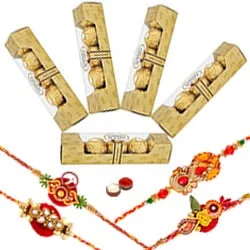 Make occassions grander with this Delicious Assortment of Ferrero Rocher Chocolates and share the moment with your loved ones. 5 Boxes, each containing 5 savory pieces of Ferrero Rocher Chocolates are perfect for happy moments with Free 4 Rakhis and Roli Tilak Chawal.