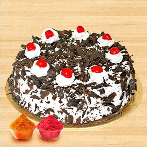 Deliver 2.2 Lb Black Forest Cake with free Gulal/Abir Pouch.