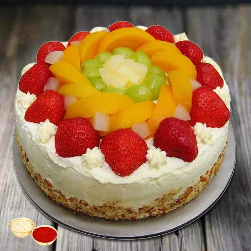 Your message of affection reaches to your adored one in a suiting sweetened way when you present him/her this Enjoyments Embrace 1 Kg Egg-less Fresh Fruit Cake and therein the relation between you two gets honey-filled.