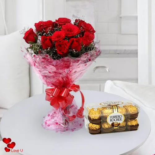 12 Red Roses Bouquet with 16 pcs Ferrero Rocher