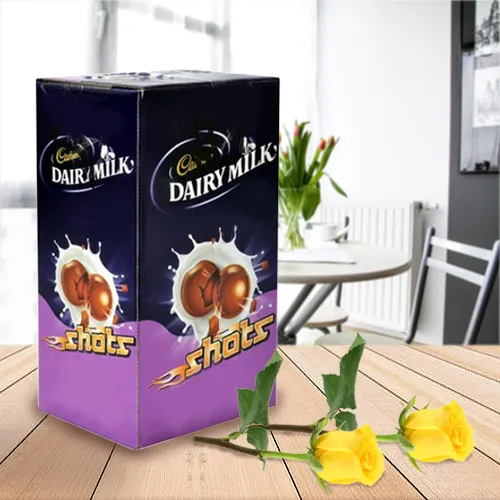 Buy Two Fresh Yellow Roses N 56 pc Cadbury Dairy Milk Shots (