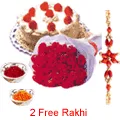 12 Red Roses witth Cake 1 Lb And 1 Free Rakhi , Roli Tilak And Chawal.