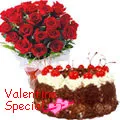 1 Kg Black Forest Cake with 24 Red Roses.Black Forest Cake from 5 star Bakery
