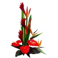 Arrangement of Bird of Paradise and Anthuriums with 16 pcs Ferrero Rocher chocolate box.