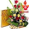 Send Diwali Gift of Nicely Wrapped 15 Mixed Roses Bouquet with Cadbury Celebration Pack (Weight : 117 gms)