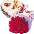 24 Red Dutch Roses Bouquet with Heart Shaped Cake 1 Kg