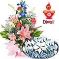 Kaju Katli with Seasonal Flowers Bouquet. Kaju Katli 1 Kg.