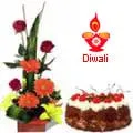 Seasonal Flower Arrangement with 1 Lb Black Forest Cake. Note: We deliver only Freshly Baked Cakes. Bakeries make ready the fresh baked Cake only by 11 AM. Thus all orders of Cake can only be delivered after noon time.