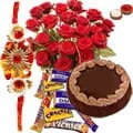 Order from miles away from your loved ones, this Delicious Cake of 1 Lb., Chocolates, 24 Red Roses and a Rakhi accentuated with a free Rakhi, Roli Tilak and Chawal to make their Raksha Bandhan special.