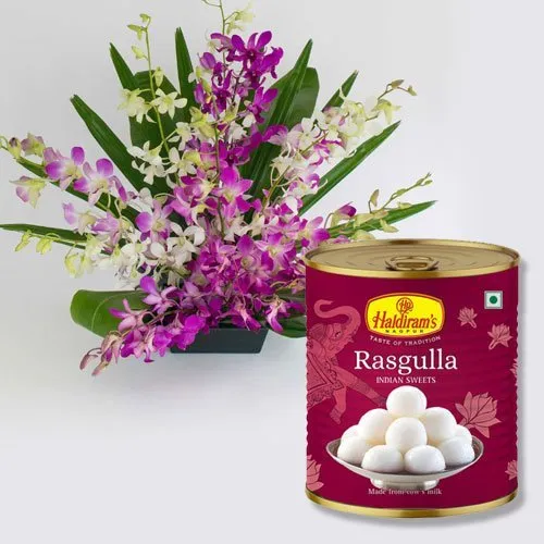 Send Diwali Gift of Orchid Arrangement with Rasgullas 1 k.g. This special Diwali Gift will make your loved ones feel happy.