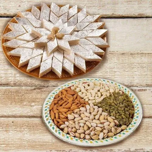 Merge your love with this Exotic Love Delight Gift Arrangement to send your heartfelt wishes to your mother on this Mothers Day. This Gift Arrangement is associated with Assorted Dry Fruits (gross weight 500 gms), Almonds, Apricots, Cashew and Kaju Katli (gross weight 500 gm).