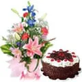 Mixed Flower Bouquet with Black Forest Cake 1 Kg. from Top Local Bakery in the City.