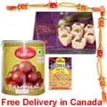 1 Kg.Gulab Jamun, 1 Kg.Soan Papri, Bhujia 200 gms. With 4 free Rakhi