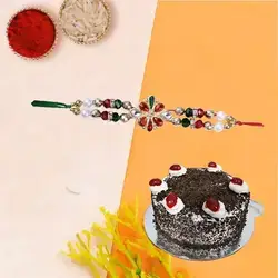 Rakhi with Black Forest Cake 1 Kg. with Roli Tika, Chawal