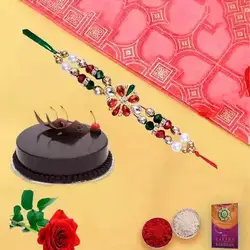 Rakhi with Chocolate Cake 1 Kg. and 1 Rose with Roli Tika, Chawal