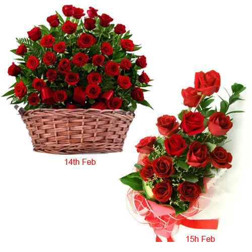 15th Feb : 12 Exclusive Dutch Red Roses Basket
