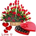 51 Exclusive Red Dutch Roses Arrangement with Heart Shaped Chocolate Box