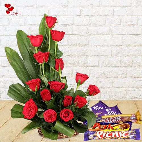 Love is the most beautiful feeling. Celebrate your moments of being in love with your beloved along with 15 Exclusive Red Dutch Roses Basket and Cadburys Assorted Chocolates.