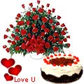 100 Dutch Red Roses with 1 Kg. Black Forest Cake