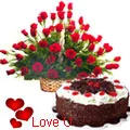 50 Red Roses with Black Forest cake 2 Kg from 5 Star Bakery