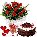 12 Red Roses with 5 Star Bakery Cake 1 Kg from 5 star Hotel Bakery (Limited Cities)