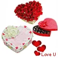 24 Red Roses in Heart Shaped Basket With Heart Shaped Cake 1 Kg. and a Heart Shaped Chocolate Box