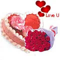 24 Red Dutch Roses Bouquet with Heart Shaped Cake 1 Kg