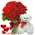 12 Red Roses Bunch with a small teddy bear (6 Inch.)