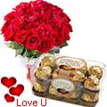 24 Exclusive Red Dutch Roses Bouquet and Ferrero Rocher Box