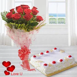 12 Dutch Red Roses with 1 Kg. Eggless Cake