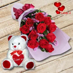 12 Red Roses Bouquet with 12 inch Teddy Bear