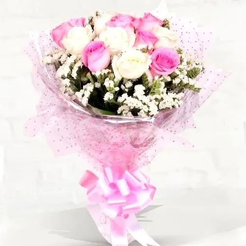 Create magical moments by ordering online this 10Pcs Pink and White Roses Bunch for your loved ones like your mother and spread your warm feelings into her heart. This Bunch of Pink and White Roses adheres a symbol of pure love, pride and dignity as well as makes an idyllic presentation for someone who deserves your adoration.