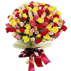 Make occassions grander with this Multicoloured Bouquet of Fifty Premium Mixed Roses and share the moment with your loved ones.