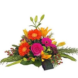 Celebration special wishes are best delivered by gifting this Vibrant Floral Bloom Basket of 4 Roses, 5 Gerberas and 2 Lilies with Floral Fillers to your family and friends.