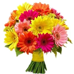 Bouquet of 15 Colourful Gerbera with 1 Cadbury Silk.
