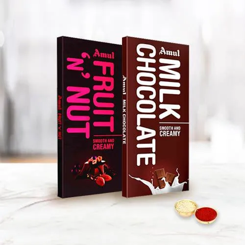 Emblaze your sweet relations by gifting this Amul Fruit n Nut (120 gm) n Amul Milk Chocolate (120 gm) with Free Bhai Dooj Tika N Chawal.
