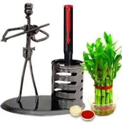 Merge your love with this Wonderful Environment Friendly Combo Gift and send it to your brother on the special occasion of Bhai Dooj. This Combo consists of 1 Parker Pen (Parker Beta Ball Point Pen), 1 Designer Pen Stand and 1 pc Lucky Bamboo Plant (2 Tier for Good luck). Even get free Roli, Tika and Chawal with the gift item.