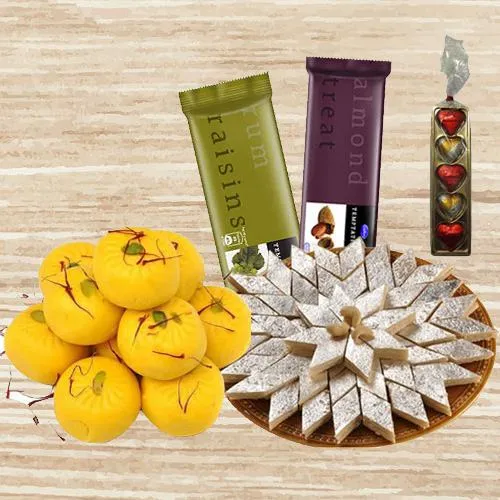 Deck the lives of your siblings with love by sending this Sweets N Savory Combo that beautifully conveys the message of your heart to them. This Hamper contains-