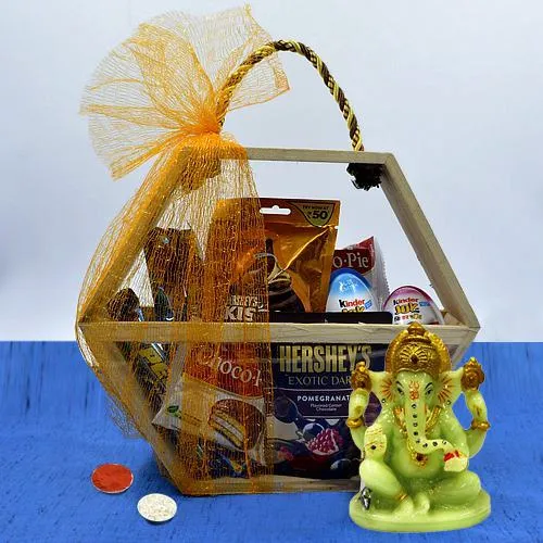 Now you can send online this Favorite Bhai Dooj Hamper of Chocolates with Glowing Ganesha N Free Roli Chawal and spread warm love to others. This Gift Hamper contains: