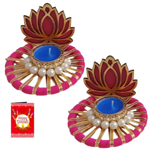 Convey your heartfelt wishes by gifting this Set of 2 Remarkable Diwali Lotus Diya Set with A Free Diwali Wishing Card to the people dearest to you.