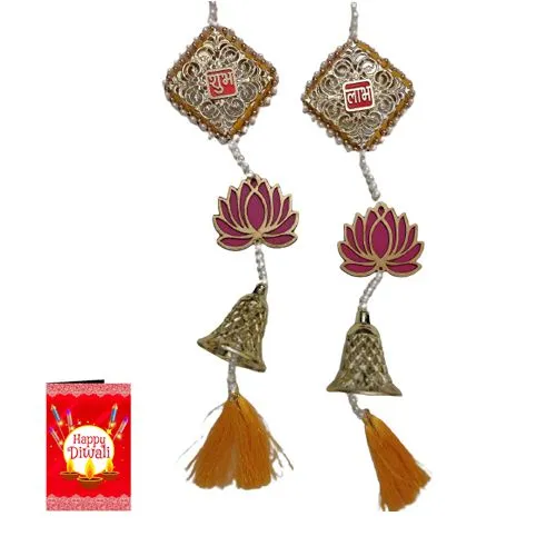 Present this gift of Beautiful Handmade Diwali Shubh Labh Toran of 2pcs with A Free Diwali Wishing Card and make the recipient’s day special.