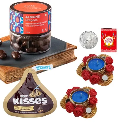 Impress your dear ones by sending this Absolute Bliss Almond Dragee N Choco Hersheys and brighten up their mood instantly, in this festive times. This Diwali Gift Basket consists of -