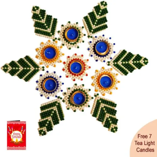 This festive season, send a gift combo of Glamorous Pearl Beaded Rangoli N Diya Set of 20 pcs for your family n friends and make them feel happy. This Diwali Gift Hamper has -