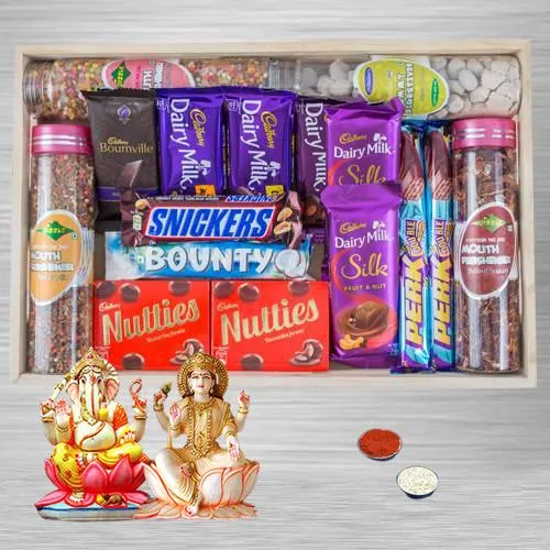 Gift your dear ones withIdeal Choco Gourmet Fantasy Hamper with Laxmi Ganesh Idol N Roli Teeka on Bhai Duj so that they feel very special when you shower your sisterly love onto them. This Bhaiya Dooj Gift hamper contains: