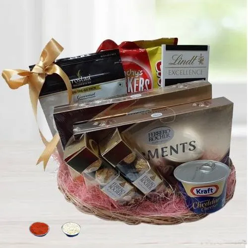 Feelings are delivered perfectly when you send this Trendy Bhaiya Duj Gourmet Delight Gift Hamper, Roli Teeka n Chawal and spread your love in the lives of the people dearest to you. This Bhaiya Duj Gift hamper contains:
