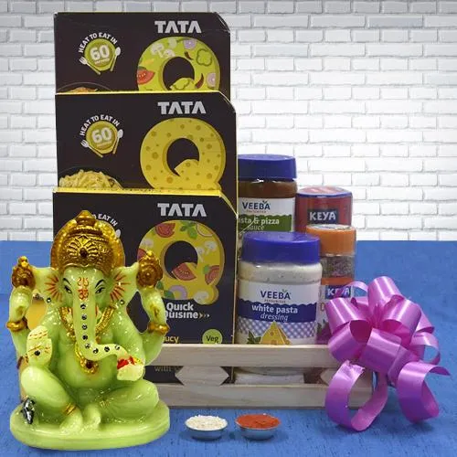 Convey your special Bhai Dooj wishes with this Special Pasta n Noodles Gift Hamper with Glowing Ganesha N Roli Teeka as you enhance happiness and shower sisterly love in the lives of other people. This Bhaiya Dooj Gift Hamper contains: